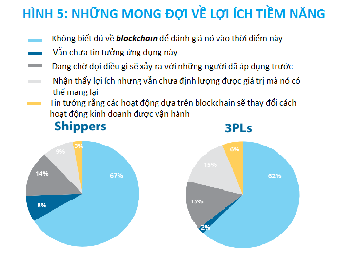 - Do đang trong giai đoạn mới bắt đầu, phần lớn các công ty phản hồi – 67% các chủ hàng và 62% các nhà cung cấp dịch vụ 3PL – cho biết họ không biết đủ về blockchain để đánh giá vào thời điểm này.