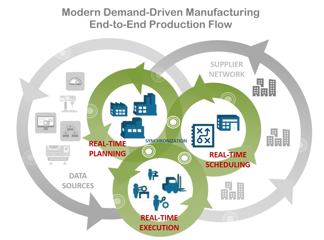Các nhà sản xuất theo nhu cầu (demand-driven manufacturing) hiện đại hoạt động trong các môi trường đã được số hóa, đồng bộ hóa với khả năng hiển thị thời gian thực (real-time visibility) sẽ được hưởng lợi từ việc tăng công suất, giảm chi phí hàng tồn kho, cải thiện thời gian giao hàng và sản lượng lớn hơn.