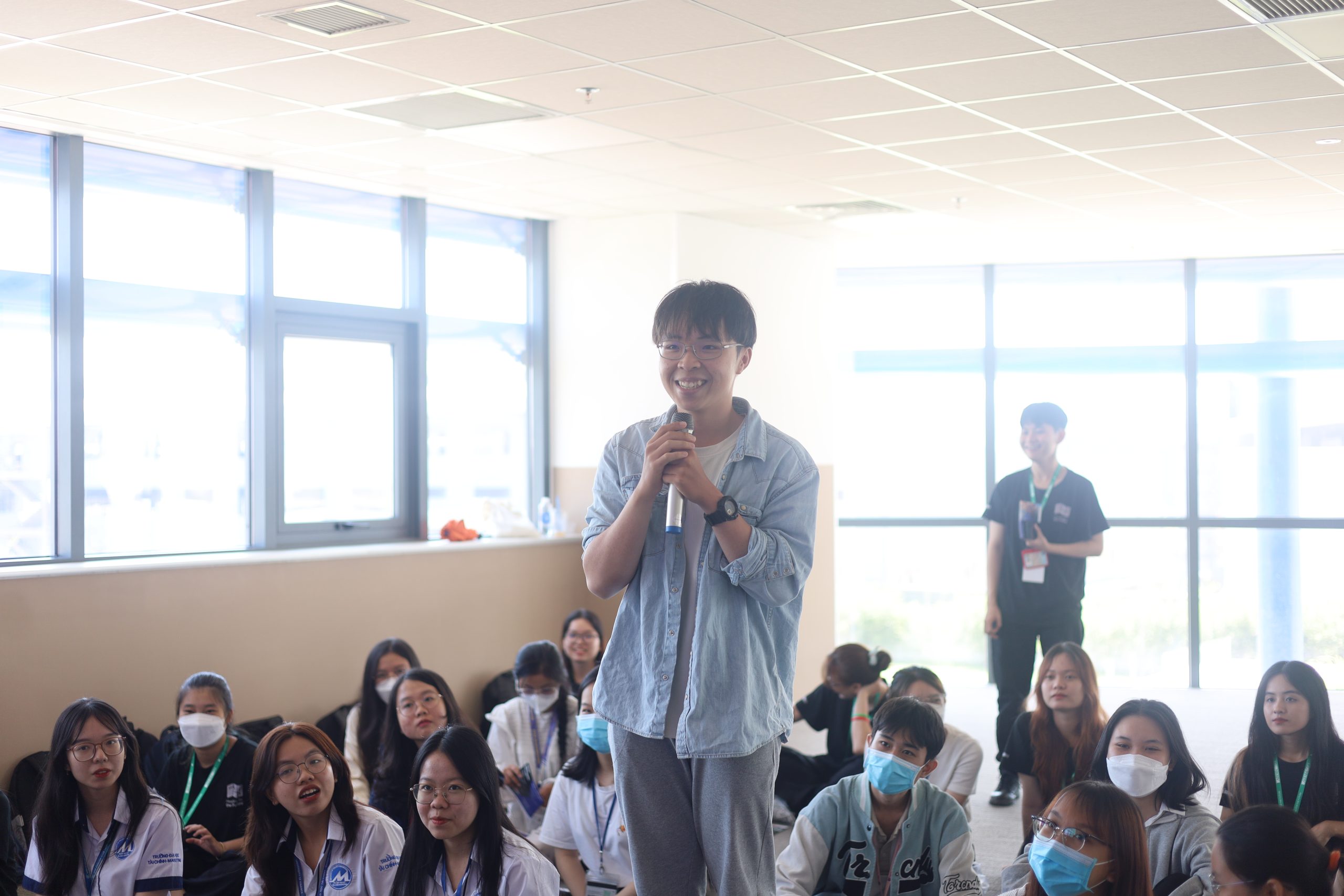 Theo lịch trình chuyến đi, các bạn sinh viên được tham quan phòng sinh hoạt chung và cùng lắng nghe chia sẻ từ chị Hường Lê – HR Manager về lịch sử hình thành và các chương trình học bổng, thực tập của FM Logistic. Tại đây, các bạn cũng được giải đáp nhiều thắc mắc bằng cách đặt câu hỏi trực tiếp cho bộ phận Nhân Sự của công ty.