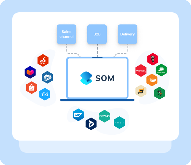 SOM tập trung toàn bộ đơn hàng từ các sàn thương mại điện tử, hệ thống quản trị doanh nghiệp ERP và các hệ thống khác, giúp người dùng dễ dàng theo dõi và kiểm soát tình trạng đơn hàng.