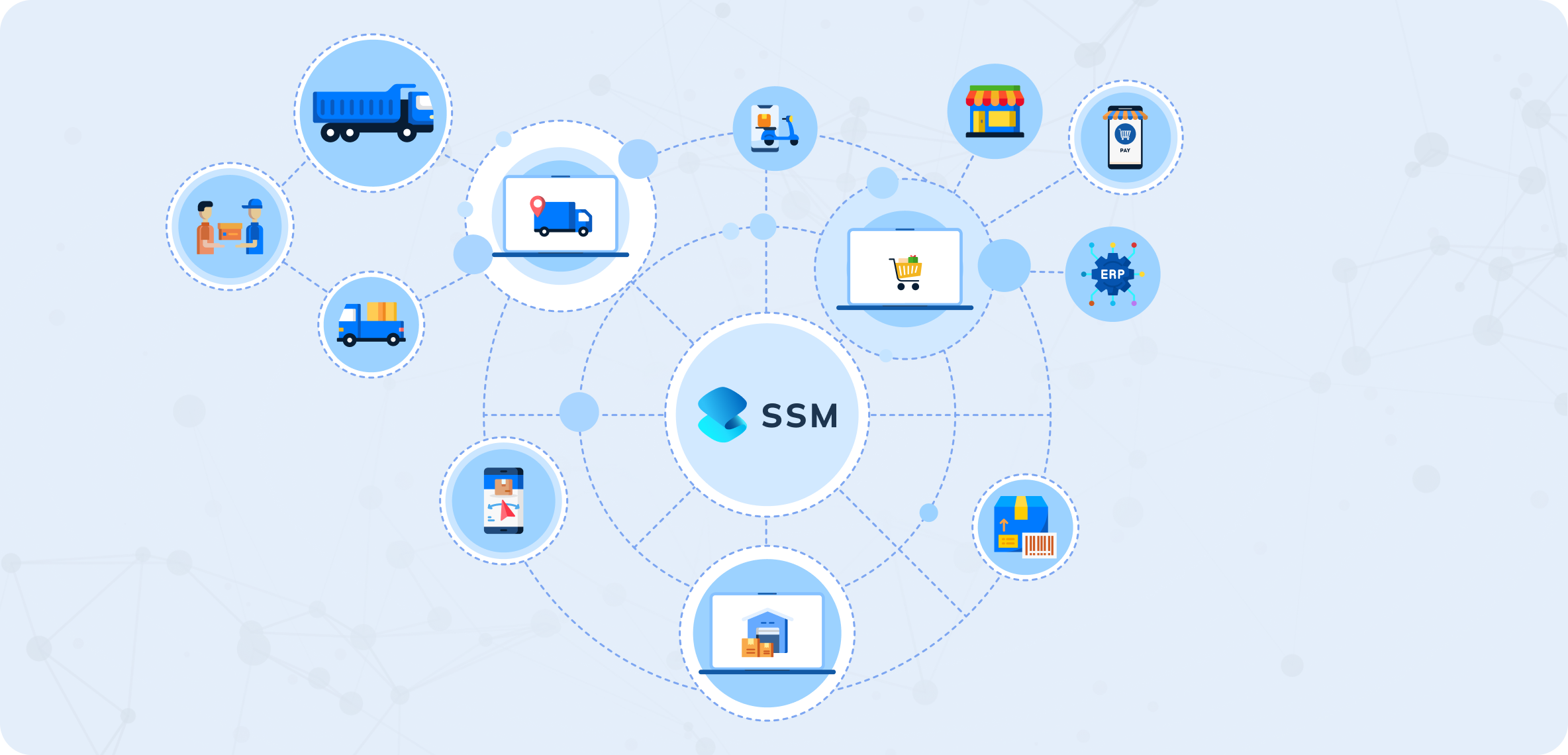 Nền tảng SSM – Smartlog Solutions for Mass là giải pháp tích hợp bộ ba giải pháp quản lý vận hành logistics cốt lõi trên cùng một nền tảng: quản lý vận tải, quản lý kho hàng và quản lý đơn hàng. SSM giúp chuẩn hóa và tự động hóa quy trình quản lý vận hành logistics với đa dạng chiến thuật phù hợp nhiều mô hình kinh doanh. Đặc biệt, chi phí đầu tư của doanh nghiệp cực thấp