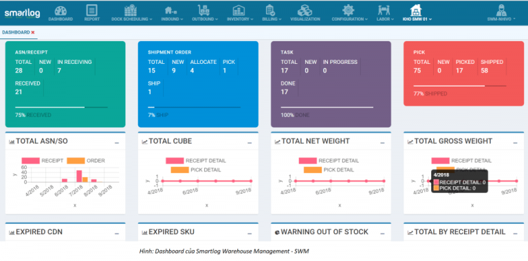 Hệ thống SWM vẫn đang kiểm soát và cảnh báo ngày hết date đúng như thực tế ngoài kho dựa theo số ngày hết hạn .Các đơn hàng hết date hoặc cận date được hệ thống SWM cảnh báo trên dashboard (cập nhật mỗi ngày) và chi tiết tại danh sách tồn kho theo HSD..