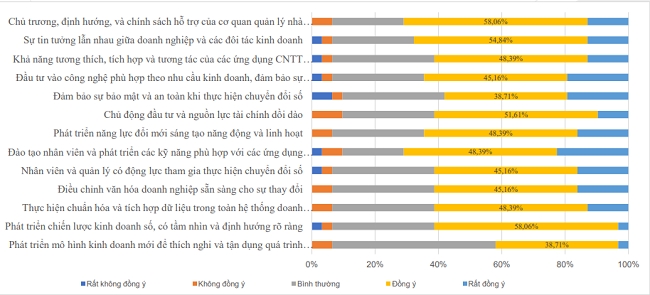 Khảo sát về mong muốn của cộng đồng doanh nghiệp, đa số doanh nghiệp cho biết mong muốn có những chủ trương, định hướng và chính sách hỗ trợ của cơ quan quản lý nhà nước đối với hoạt động chuyển đổi số trong ngành logistics. Bên cạnh đó, sự tin tưởng lẫn nhau giữa các doanh nghiệp, đối tác cũng là yếu tố được quan tâm để thúc đẩy chuyển đổi số.