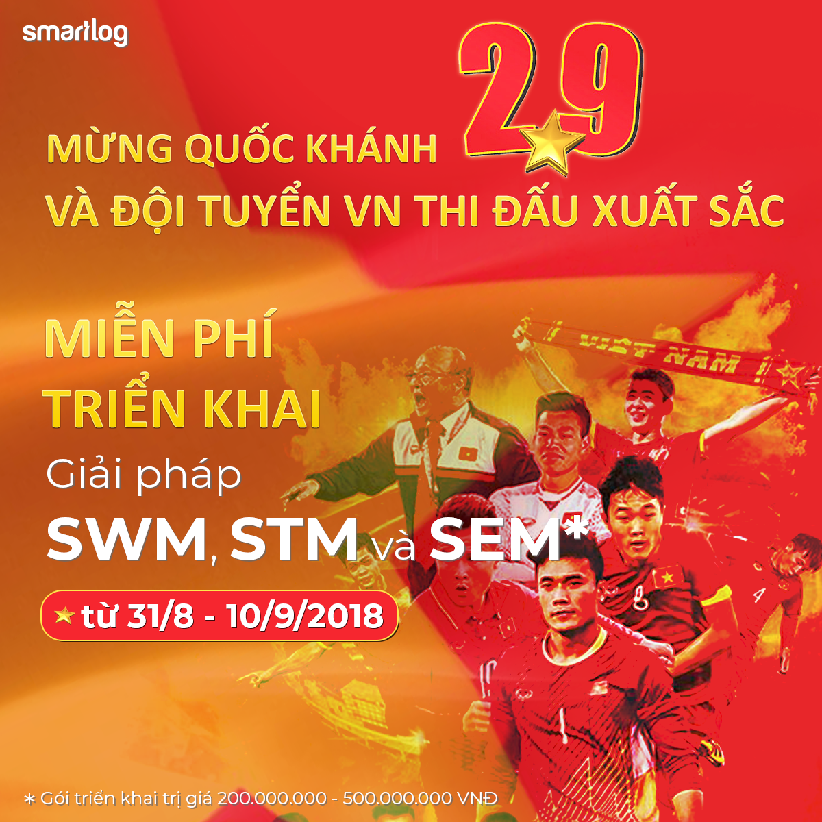 Kỷ niệm Quốc Khánh lần thứ 73 (2/9/1945 – 2/9/2018), Smartlog triển khai chương trình miễn phí triển khai hai nền tảng SWM (quản lý nhà kho) & STM (quản lý vận tải) dành cho các khách hàng lần đầu sử dụng hệ sinh thái Smartog.