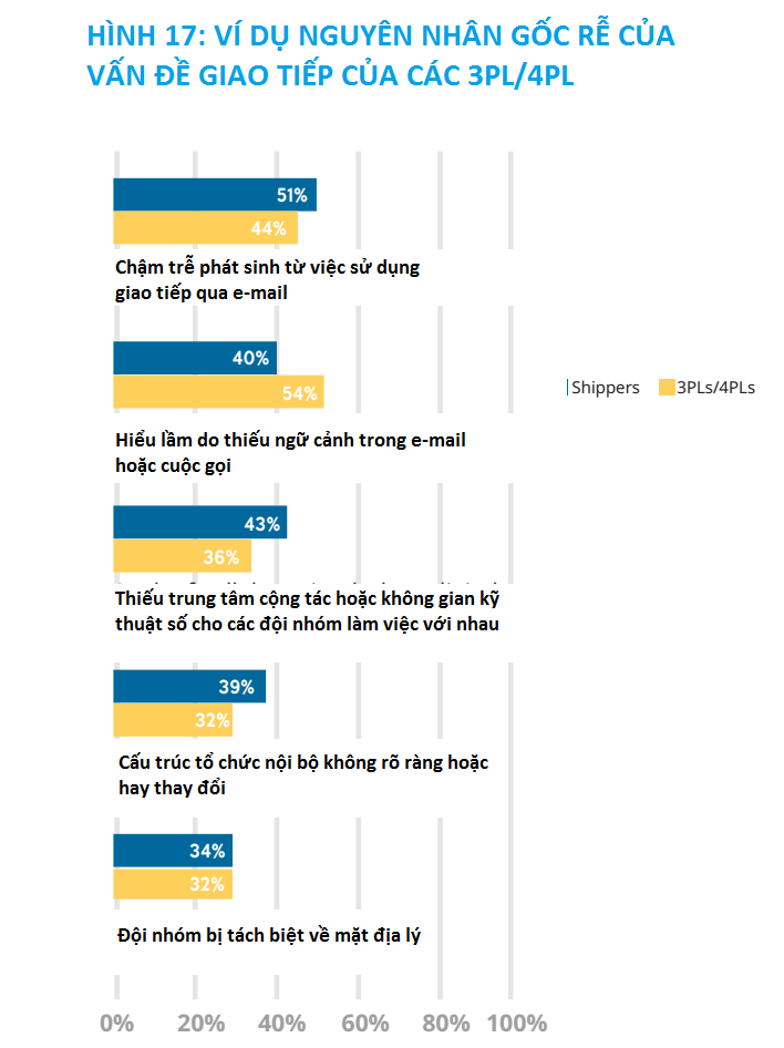 - Hơn một nửa số chủ hàng (59%) và 3PL (65%) cho biết hành động không rõ ràng và thiếu quyền sở hữu có thể ảnh hưởng đến khả năng của 3PL trong việc ra quyết định kịp thời.