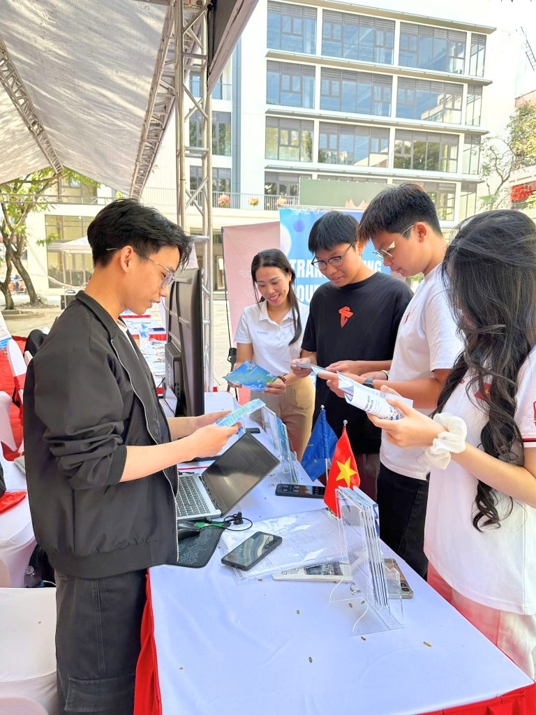Gian hàng thu hút sự quan tâm của sinh viên FTU với nhiều câu hỏi liên quan đến xu hướng Logistics công nghệ, yêu cầu nhân lực và lộ trình nghề nghiệp. Đội ngũ Smartlog chia sẻ thông tin về kỹ năng cần thiết, cơ hội nghề nghiệp và những thay đổi trong quản trị chuỗi cung ứng. Các trao đổi diễn ra cởi mở và mang tính định hướng, giúp sinh viên có góc nhìn rõ hơn về ngành.