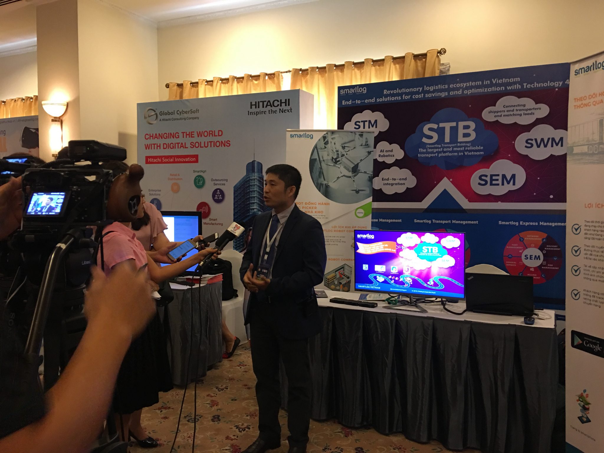 Hình 8: Đại diện Smartlog Mr.Trần Trung Hiếu – Phó Giám Đốc trả lời phỏng vấn của báo, đài về ứng dụng công nghệ trong logistics
