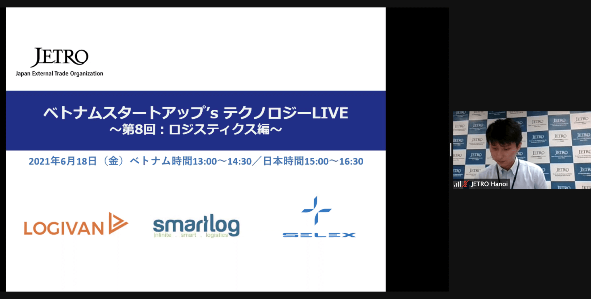 Ngày 18/6/2021, Tổ chức xúc tiến thương mại Nhật Bản (JETRO) đã tổ chức hội thảo trực tuyến với chủ đề “Công nghệ Việt Nam khởi nghiệp” nhằm thúc đẩy hợp tác chuyển đổi số giữa các công ty của Nhật Bản và Việt Nam. Smartlog rất vinh dự là một trong những công ty khởi nghiệp tại Việt Nam tham gia cùng các doanh nghiệp hàng đầu tại Nhật Bản. Ông Đỗ Huy Bình (Kurt Bình) – Tổng giám đốc công ty Smartlog đã có những chia sẻ về việc số hóa chuỗi cung ứng thông qua hệ sinh thái các giải pháp logistics.