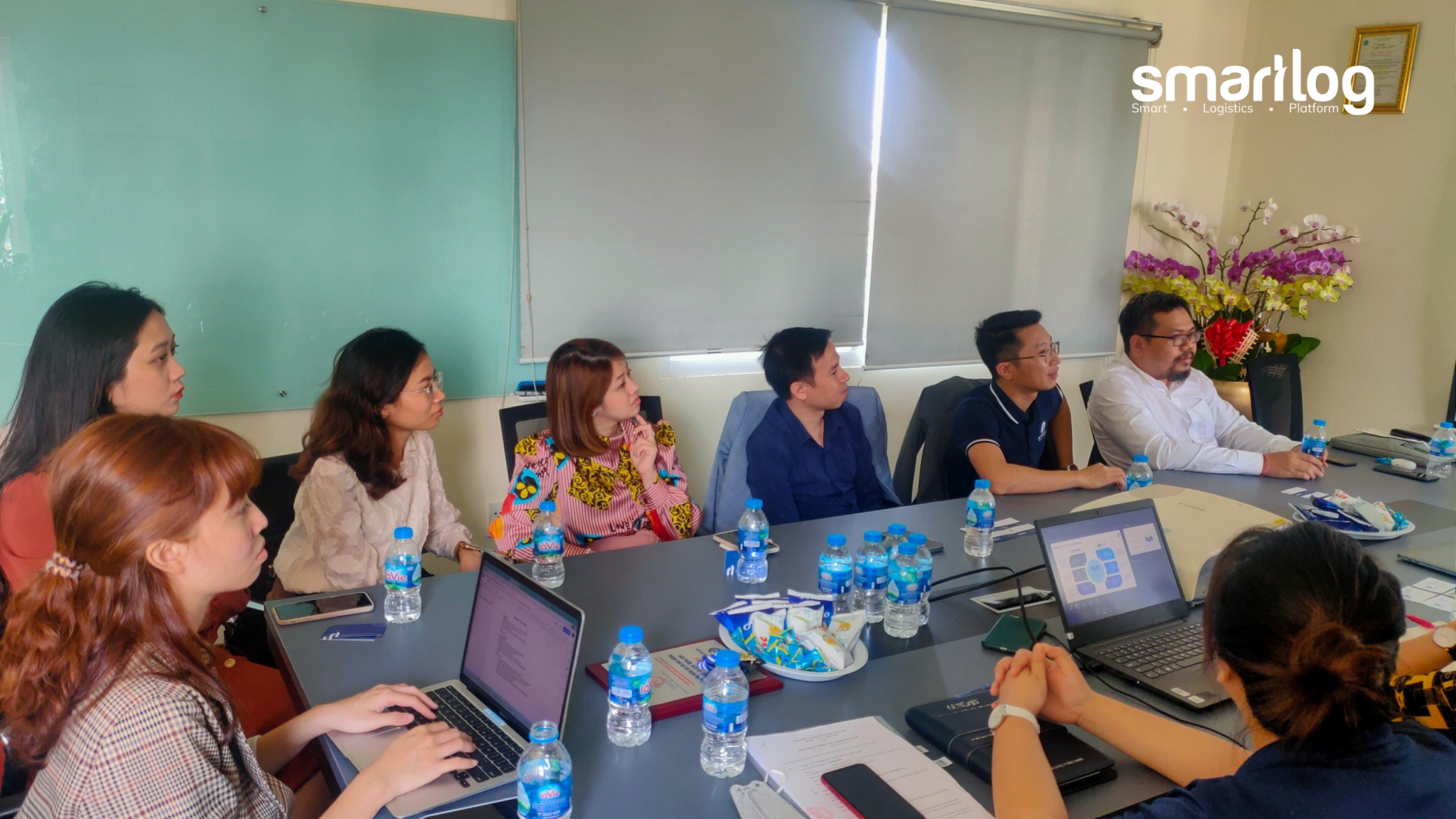 Đại diện Smartlog có ông Đỗ Huy Bình (CEO & Founder), ông Đặng Việt Hùng (CTO), bà Lại Đỗ Phương Vi (Strategic Business Development Director) và cộng sự.