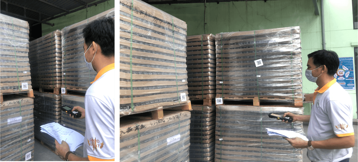 Tất cả các thùng được quản lý theo pallet, lưu kho tại kho Thành phẩm