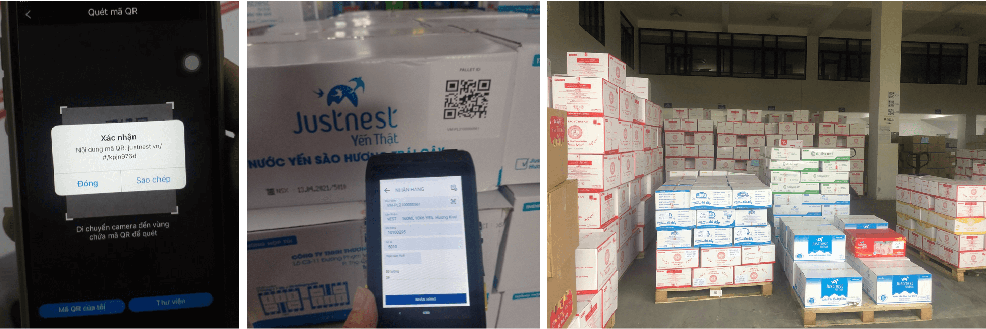 100% nguyên liệu đầu vào bao gồm: bao bì, nắp lọ, nguyên vật liệu đều được quản lý bằng QR code pallet / carton.