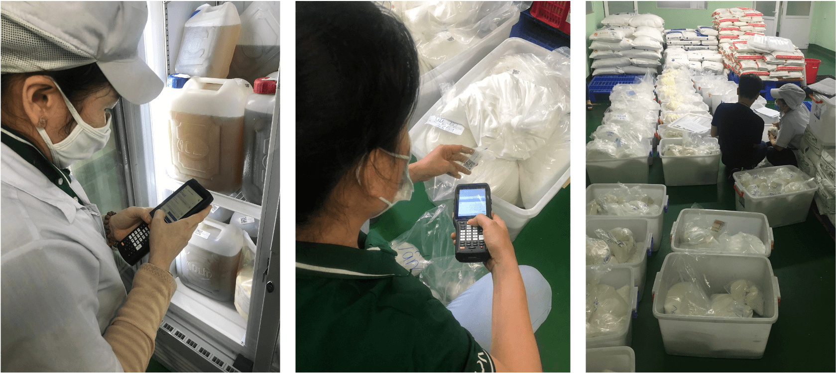 Thủ kho có thể dùng thiết bị để kiểm tra sản phẩm, nhập, xuất BTP để đóng gói
