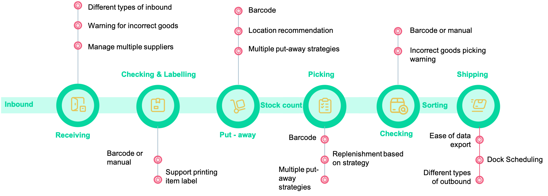 Management of the entire status of goods: Good goods, damaged goods, goods awaiting processing…