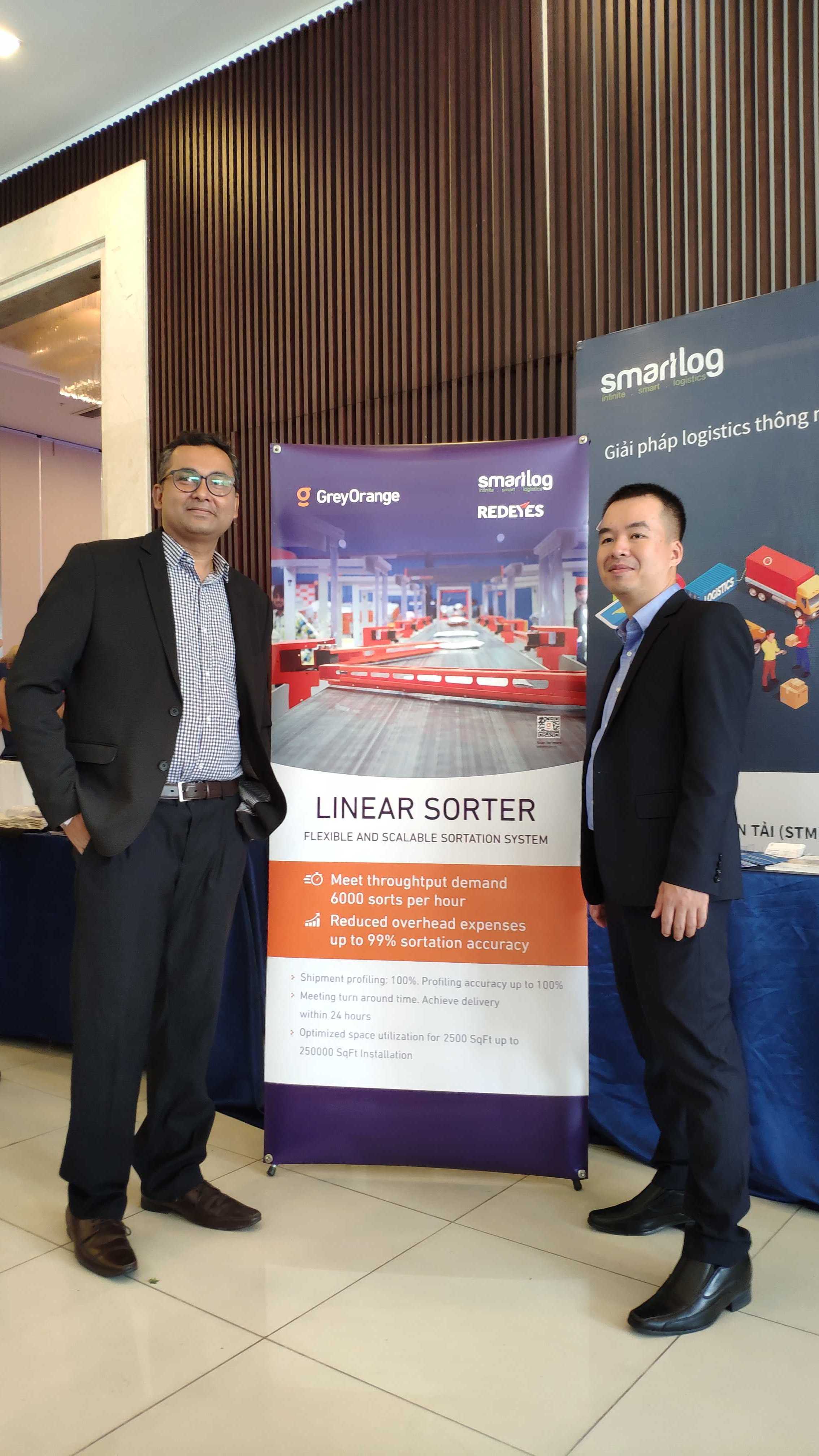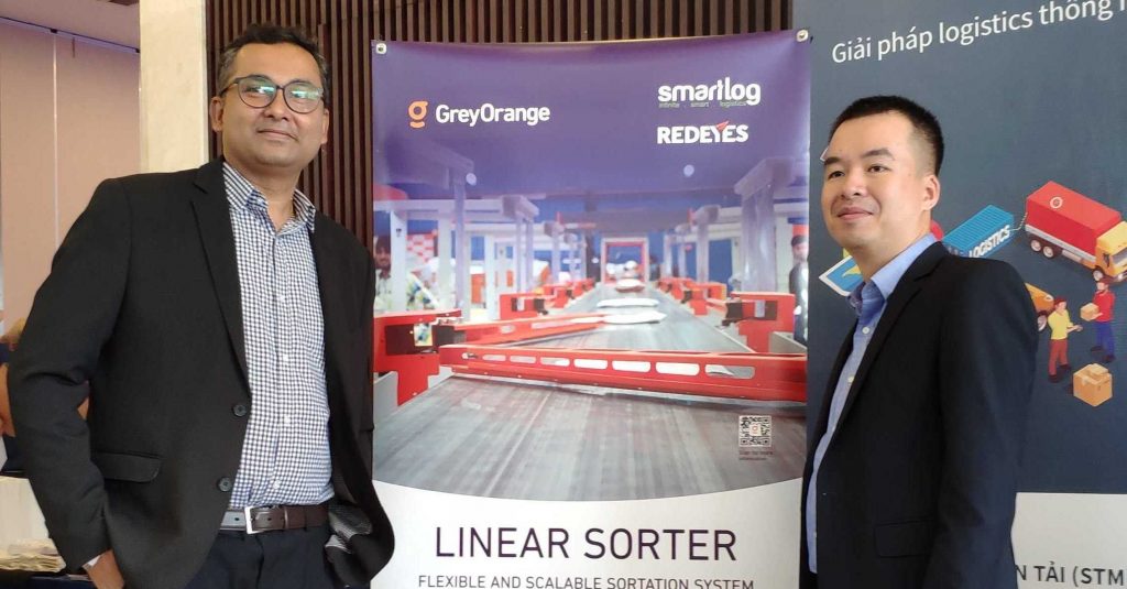 Ông Satyanarayana (đại diện Grey Orange) cùng ông Trần Duy Khiêm (đại diện Smartlog) tại diễn đàn