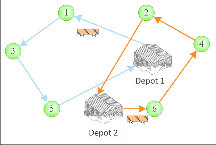 1. Lấy hàng/ gom hàng tại nhiều kho (Multiple Depot VRP – MDVRP)